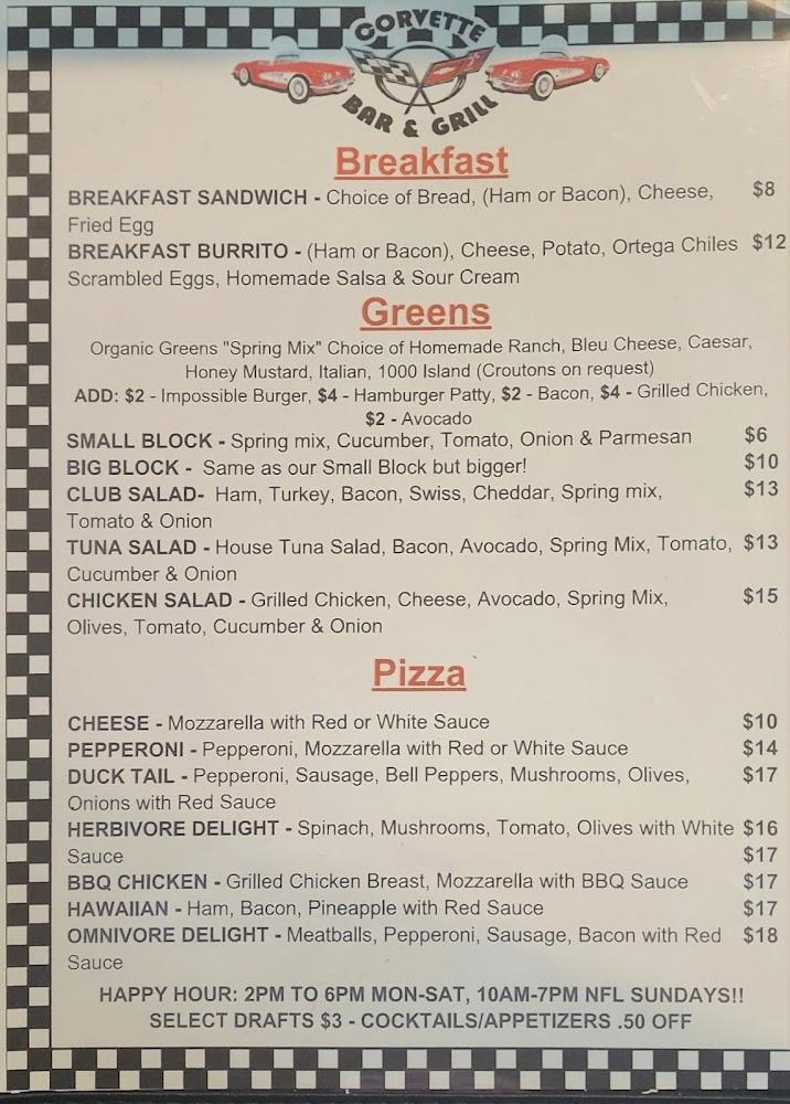 The menu at Corvette Bar & Grill showcases a blend of classic American dishes and local favorites. Popular items include burgers, tacos, and pizzas, all crafted with care. Signature dishes like the pastrami melt and club sandwich grab attention for their flavors and hearty portions.